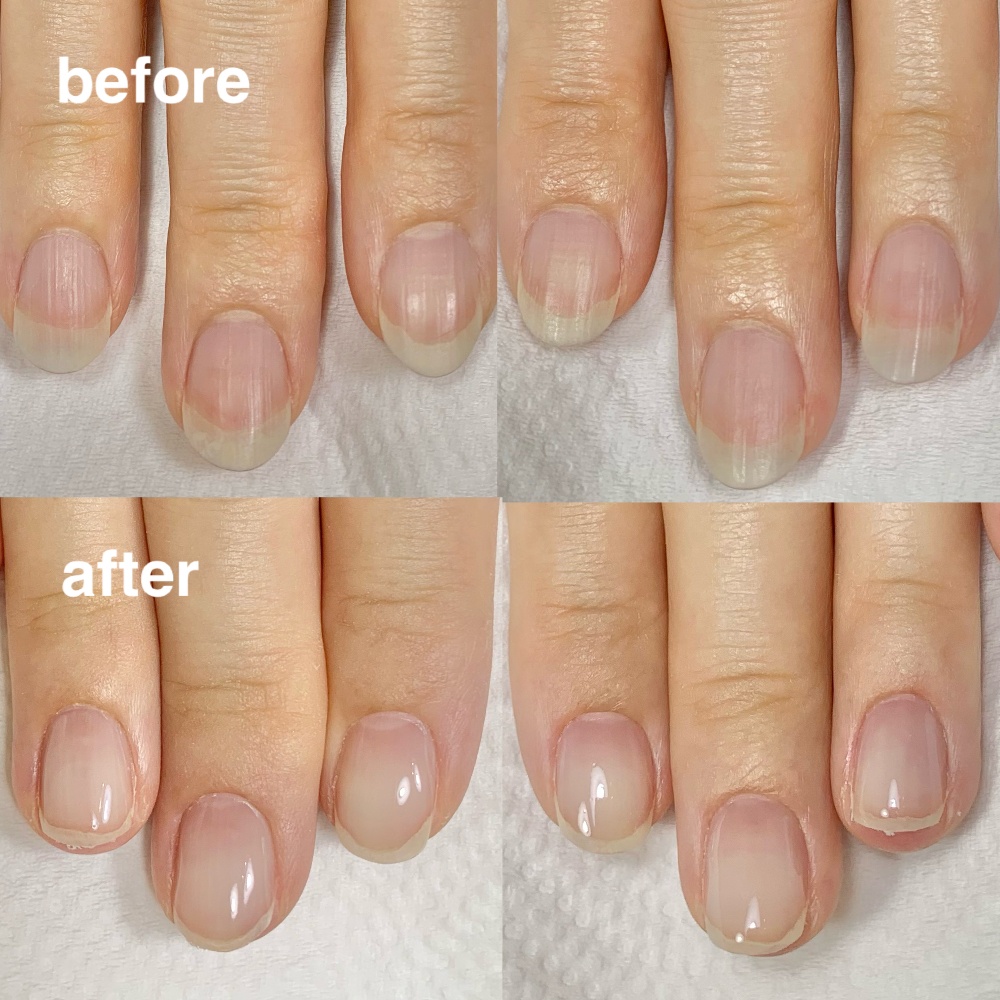 こんにちは🌟滋賀県近江八幡市 自爪育成ネイルサロンLiLaLa❁リララ の ゆかり です。3回目のご来店、自爪育成を始められ2ヶ月での変化です✨