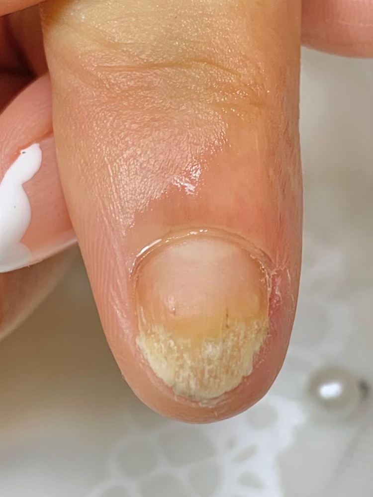 こんにちは🌟滋賀県近江八幡市 自爪育成ネイルサロンLiLaLa❁リララ の ゆかり です。一つ前の記事のお客さま一本だけ剥離しているお爪があり【病院を受診し、菌がいないことを確認】のもと剥離ケアで様子を見させていただいております。