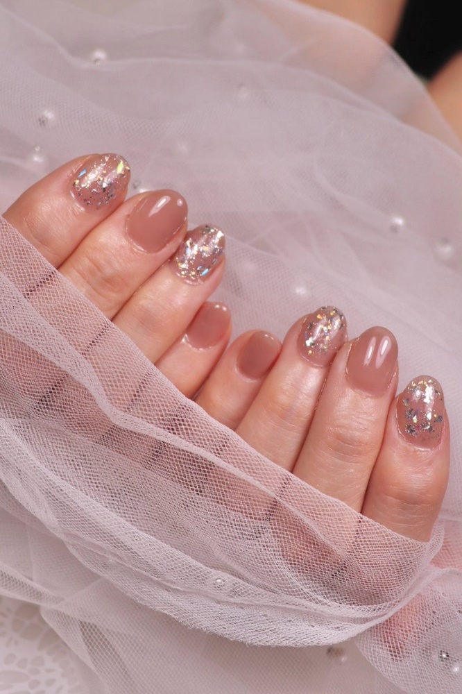 こんにちは🌟滋賀県近江八幡市 自爪育成ネイルサロンLiLaLa❁リララ の ゆかり です。秋カラーにラメがかわいいです〜🥺💕💕自爪が整っているのでこんなに映えるっ!
