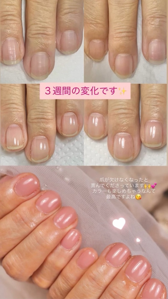 こんにちは🌟滋賀県近江八幡市 自爪育成ネイルサロンLiLaLa❁リララ の ゆかり です。自爪育成を始められ3週間2回目のご来店のお客さまです🎀お仕事柄指先をよく使われるので以前はよく欠けたりしていたそうですがジェルの欠けもなくお戻りでした👏