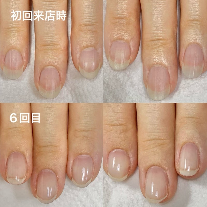 こんにちは🌟滋賀県近江八幡市 自爪育成ネイルサロンLiLaLa❁リララ の ゆかり です。初めてご来店くださった時はピンクの部分が丸?四角?だったのが今ではこんなに縦長な長方形に✨