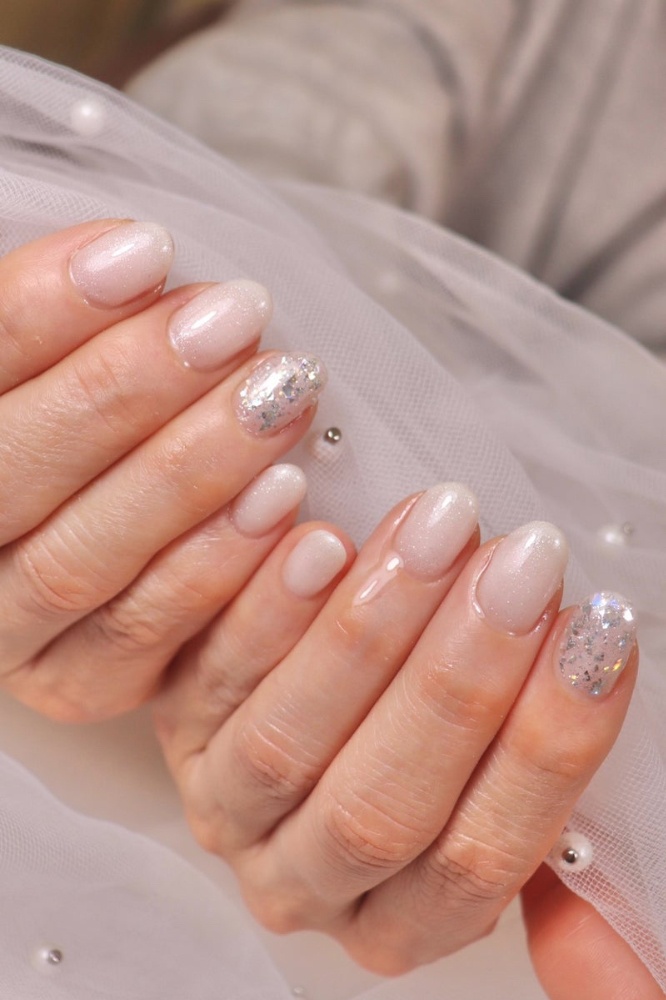 でもジェルでカバーすることで縦筋が気にならなくなりプチストレスからも解放🪄また毎月好きなネイルも楽しめる❤️今月はホワイトネイル🤍人気ですˎˊ˗